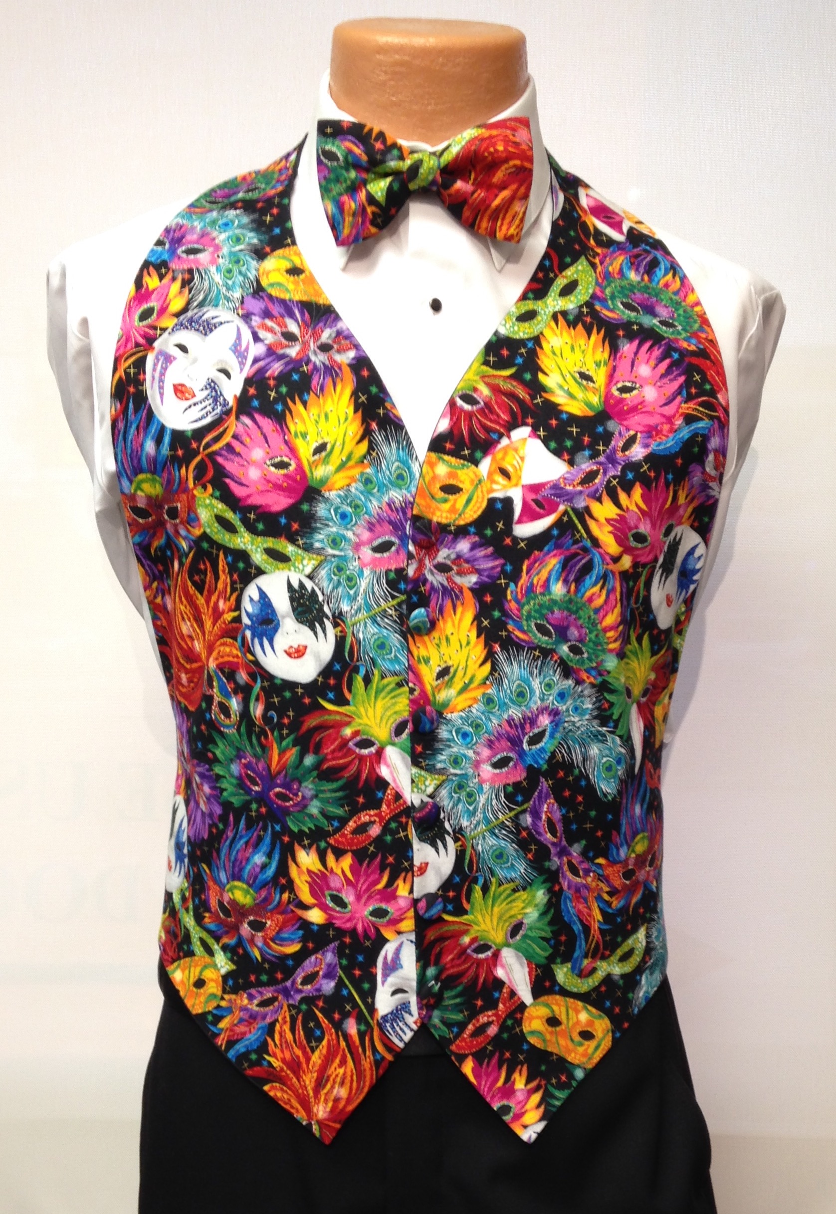Mardi Gras Feathers Vest and Bow Tie